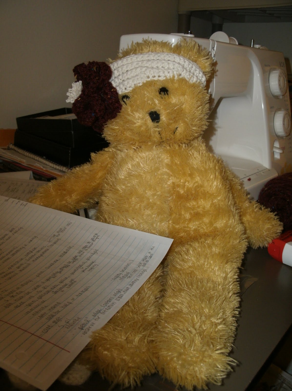 Also, in an attempt to comfort myself from the woes of school, I decided to learn how to crochet those cute flowers I see everywhere. Realizing I didn't have anything to wear it with, I attached it to a headband I made and donated it to Lucy (whom I rescued from DI), my study buddy. Isn't she cute?